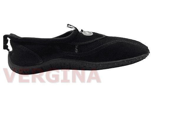 Ανδρική παντόφλα ελαστικό ύφασμα παπουτσάκι θαλάσσης σε χρώμα μαύρο το ύψος του πέλματος μπροστά είναι 1 εκατοστό και πίσω 1,5 εκατοστά.Η σόλα είναι λάστιχο με ανάγλυφη για καλύτερη σταθερότητα, είναι πολύ εύκαμπτο.Το ελαστικό ύφασμα δινει την αίσθηση της κάλτσας που εφαρμόζει τέλεια στο πόδι.Το καρδόνι σφίγγει στον αστράγαλο για καλύτερη σταθερότητα. Έχει τρίπες το ύφασμα για να αερίζεται το πόδι. Ιδανικό για μέσα στη θάλασσα και κολύμπι.