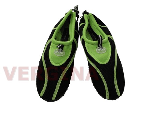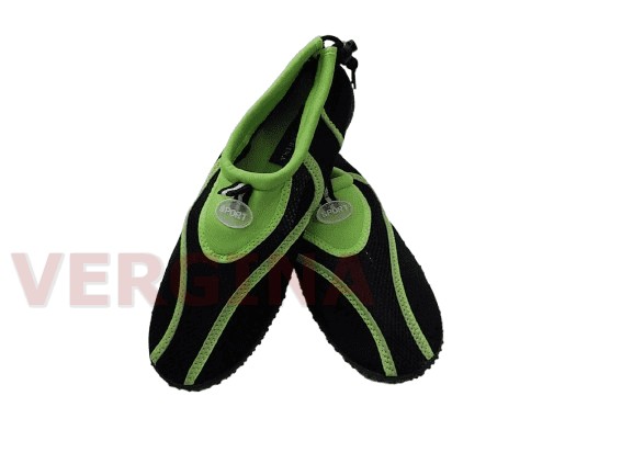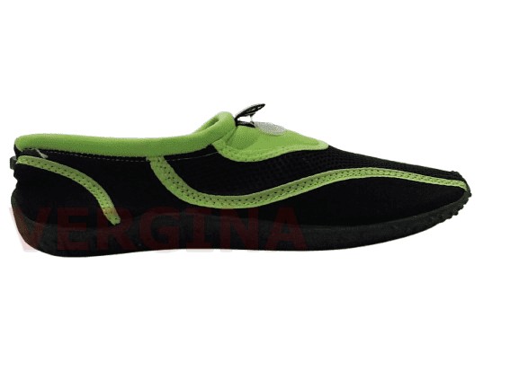 Ανδρική παντόφλα ελαστικό ύφασμα παπουτσάκι θαλάσσης σε χρώμα μαύρο-λαχανί το ύψος του πέλματος μπροστά είναι 1 εκατοστό και πίσω 1,5 εκατοστά.Η σόλα είναι λάστιχο με ανάγλυφη για καλύτερη σταθερότητα, είναι πολύ εύκαμπτο.Το ελαστικό ύφασμα δινει την αίσθηση της κάλτσας που εφαρμόζει τέλεια στο πόδι.Το καρδόνι σφίγγει στον αστράγαλο για καλύτερη σταθερότητα. Έχει τρίπες το ύφασμα για να αερίζεται το πόδι. Ιδανικό για μέσα στη θάλασσα και κολύμπι.