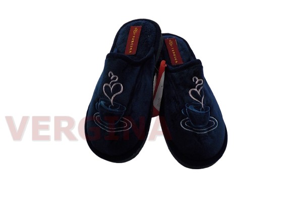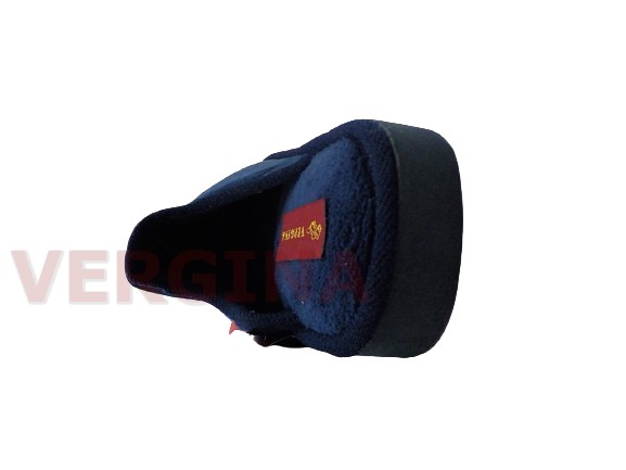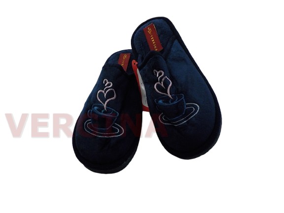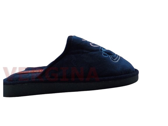 Γυναικεία παντόφλα βελουτέ σε χρώμα μπλέ το ύψος του πέλματος μπροστά είναι 1,2 εκατοστά και πίσω 1,6 εκατοστά.Το επάνω μέρος του είναι βελουτέ με μοντέρνο σχεδιασμό παντόφλας ,η εσωτερική επένδυση είναι βελουτέ .Η σόλα είναι πολύ μαλακιά και εύκαμπτη, δεν γλιστράει,ιδανική για καθημερινή χρήση,άνετη φόρμα.