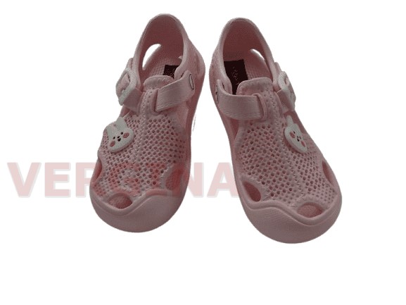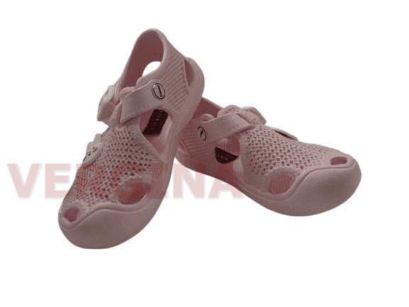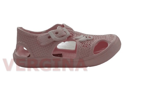 Παιδική παντόφλα πλαστική σε χρώμα ρόζ το ύψος μπροστά είναι 1 εκατοστό και πίσω 1,5 εκατοστό.Έχει άνετη φόρμα ,ιδανική για χρήση νερού έχει λουράκι με κούμπωμα που κρατάει τη φτέρνα για καλύτερο κράτημα.Δεν γλιστράει και για καθημερινή χρήση.