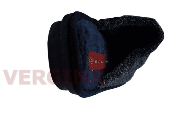 Ανδρική παντόφλα βελουτέ σε χρώμα μπλέ το ύψος μπροστά είναι 1,2 εκατοστά και πίσω 2,2 εκατοστά.Εξωτερικά είναι ύφασμα, εσωτερικά η επένδυση είναι από ζεστό ύφασμα ανεξίτηλο.Αντιολισθητική και εύκαμπτη σόλα (δεν γλυστράει αποφεύγονται οι κραδασμοί).Πλένετε στο πλυντήριο στους 30 βαθμούς ,άψογη εφαρμογή στο πόδι.