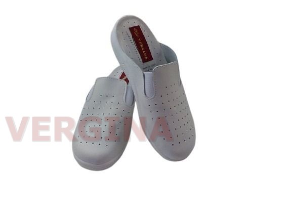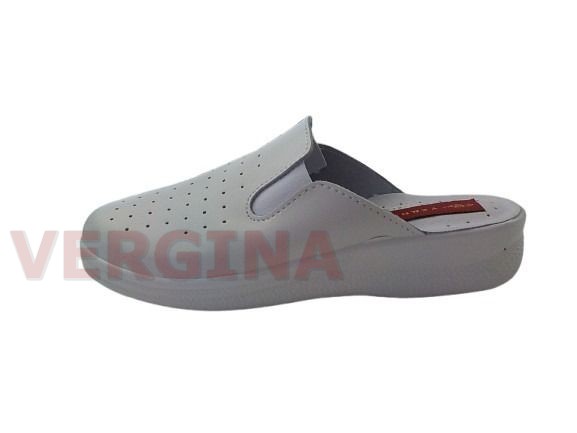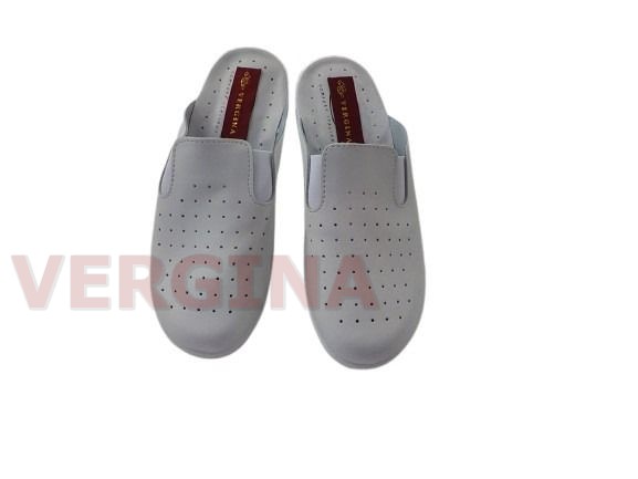 Γυναικεία παντόφλα σαμπό σε χρώμα λευκό , το πέλμα μπροστά είναι 2,5 εκατοστά και πίσω 1,3 εκατοστά.Ο πάτος είναι δέρμα ανατομικός , η σόλα είναι ζασγρέ κιαι δεν γλυστράει. Το επάνω μέρος του έχει τρίπες για να αερίζεται από τα νερά ή τον ιδρώτα για να μη μυρίζει, τα λάστιχα διευκολύνουν στην κίνηση του ποδιού σας.Ιδανικό για δουλειά για περπάτημα για όλη μέρα κάθε μέρα.Παντόφλες VERGINA Άνεση σε κάθε βήμα σας!!!! Ιταλικής προέλευσης.