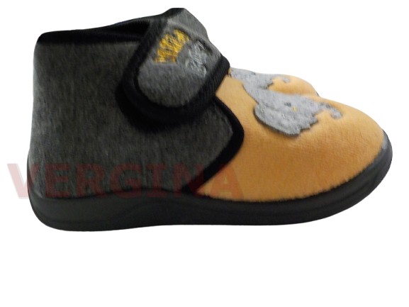 Παιδική παντόφλα βελουτέ σε χρώμα γκρί-σομόν με χαρακτηριστικό το ελαφαντάκι .Το ύψος του πέλματος μπροστά είναι 1 εκατοστό και πίσω 1,2 εκατοστά.Διαθέτει αυτοκόλλητο που κρατάει ασφαλές το πόδι του παιδιού για τις καθημερινές δραστηριότητες στο σπίτι, στηρίζουν το πόδι του παιδιού διευκολύνοντας ταυτόχρονα την κίνηση χάρη στον μαλακό τους πάτο .Δεν γλιστράει δεν μυρίζει,πλένετε στους 30 βαθμούς.