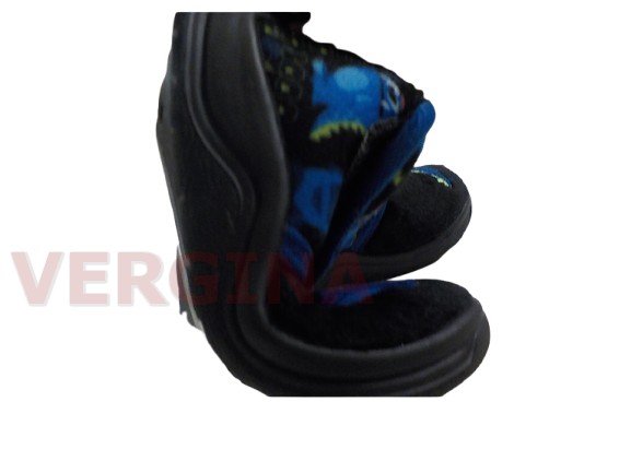 Παιδική παντόφλα βελουτέ σε χρώμα μπλέ-ράφ με χαρακτηριστικό το σκατζοχοιράκι .Το ύψος του πέλματος μπροστά είναι 1 εκατοστό και πίσω 1,2 εκατοστά.Διαθέτει αυτοκόλλητο που κρατάει ασφαλές το πόδι του παιδιού για τις καθημερινές δραστηριότητες στο σπίτι, στηρίζουν το πόδι του παιδιού διευκολύνοντας ταυτόχρονα την κίνηση χάρη στον μαλακό τους πάτο .Δεν γλιστράει δεν μυρίζει,πλένετε στους 30 βαθμούς.